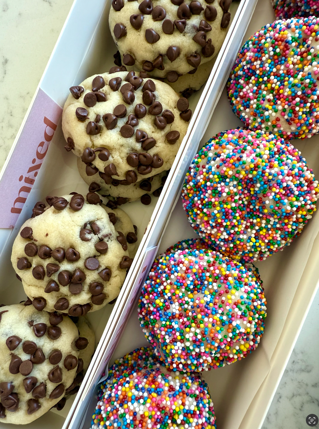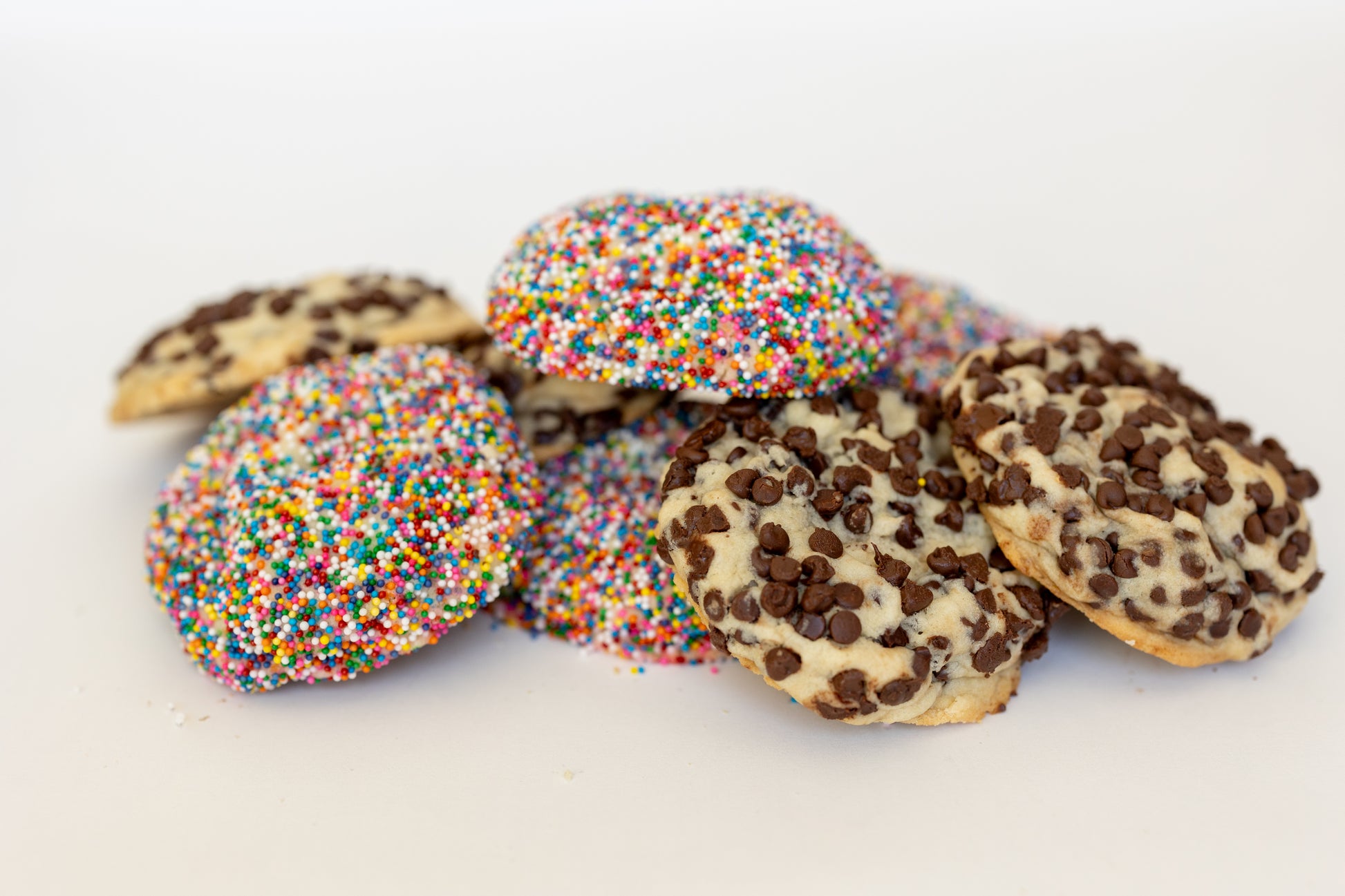 A perfect combo of our homemade, soft buttery sugar cookies. Can't decide between chocolate chips or colorful sprinkles? Why not get both!